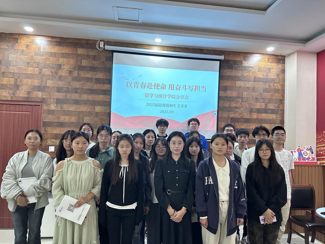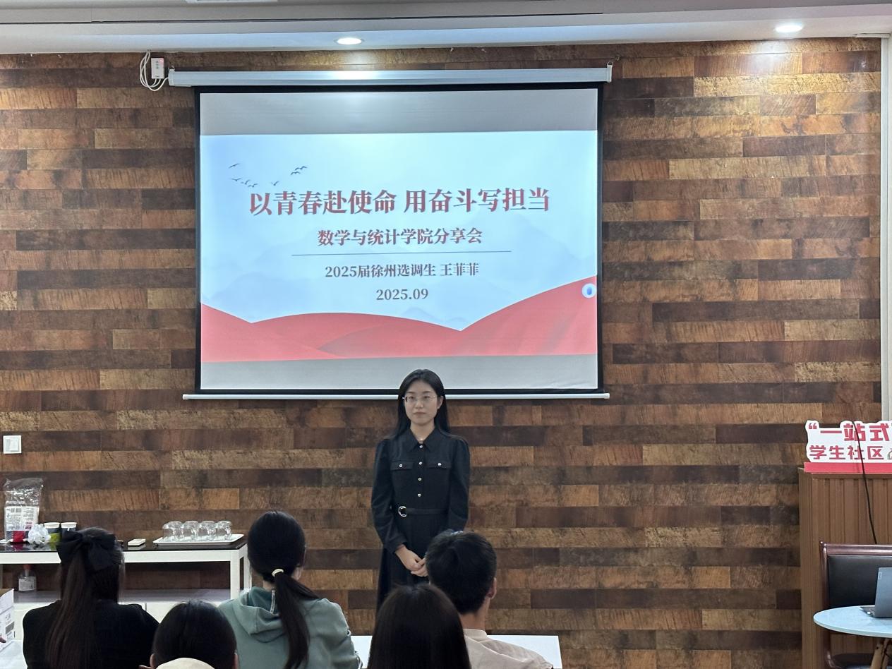 为帮助同学们拓宽发展视野、明晰未来方向,9月28日,数学与统计学院2025届优秀毕业生、徐州市选调生王菲菲应邀来校,面向学弟学妹开展了一场生动翔实的经验分享。她结合个人成长经历,围绕能力积累、实践参与、时间规划等多个方面,细致分享了心得体会与实用建议。