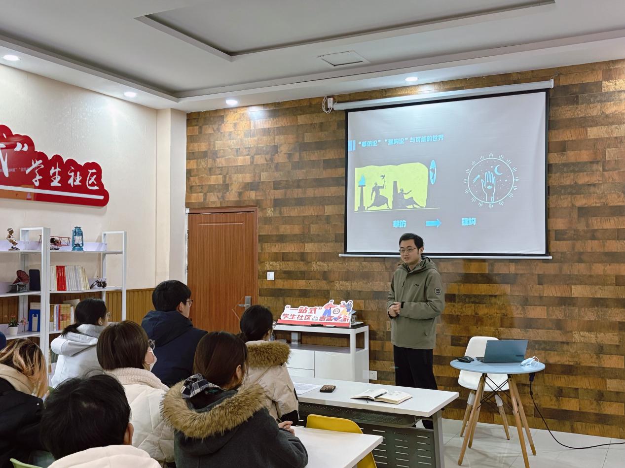 12月4日上午,学工处联合人文学院在中心校区“一站式”学生社区活动室举办第三十四期“教授有约”活动。人文学院任一江副教授以《科技时代,我们为什么要阅读科幻文学》为题,为在场学生带来了一场富有启发性的专题讲座,学院辅导员张稳老师主持此次活动。