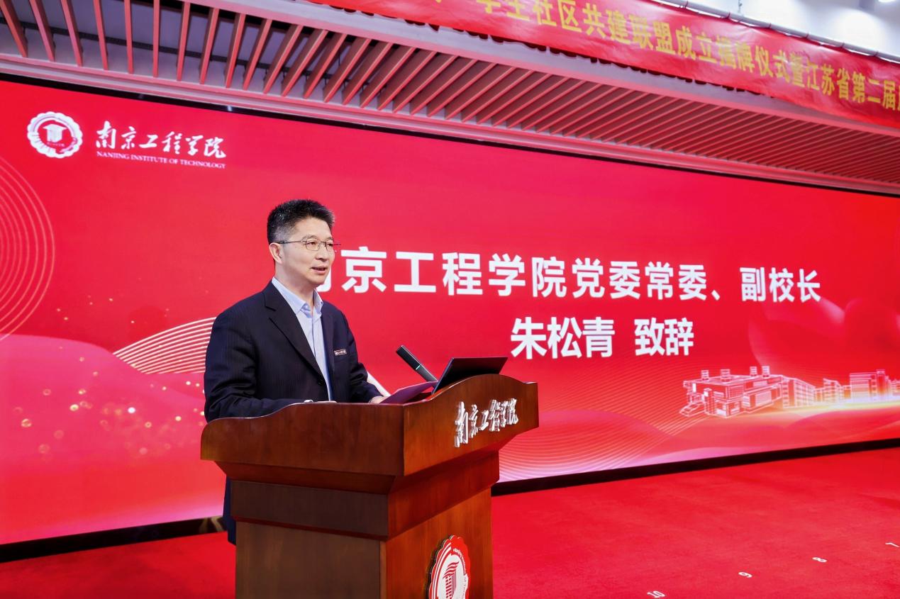 活动期间,江苏省应用型高校“一站式”学生社区共建联盟正式宣告成立。主办方代表、南京工程学院党委常委、副校长朱松青在开幕式致辞。他指出,联盟旨在构建一个交流协作、资源共享、智慧共聚的平台,共同推动应用型高校学生工作内涵式发展。联盟的成立,标志着省内应用型高校在学生社区协同育人方面迈出了新的步伐。