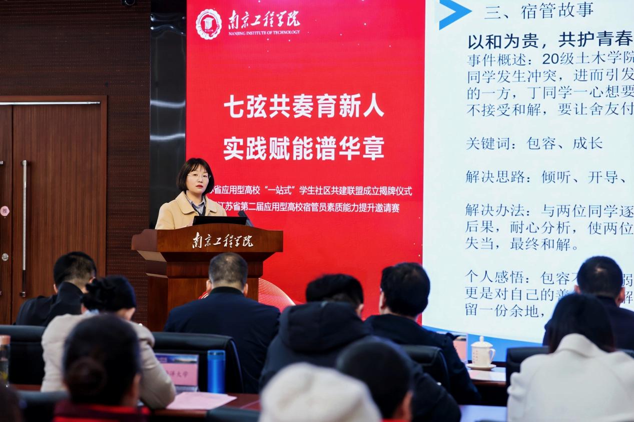 12月16—17日,江苏省应用型高校“一站式”学生社区共建联盟成立大会暨第二届高校宿管员素质能力提升邀请赛在南京工程学院举办。我校选手郭秀娟荣获大赛二等奖,充分展现了我校宿管队伍的能力素养与专业风采。