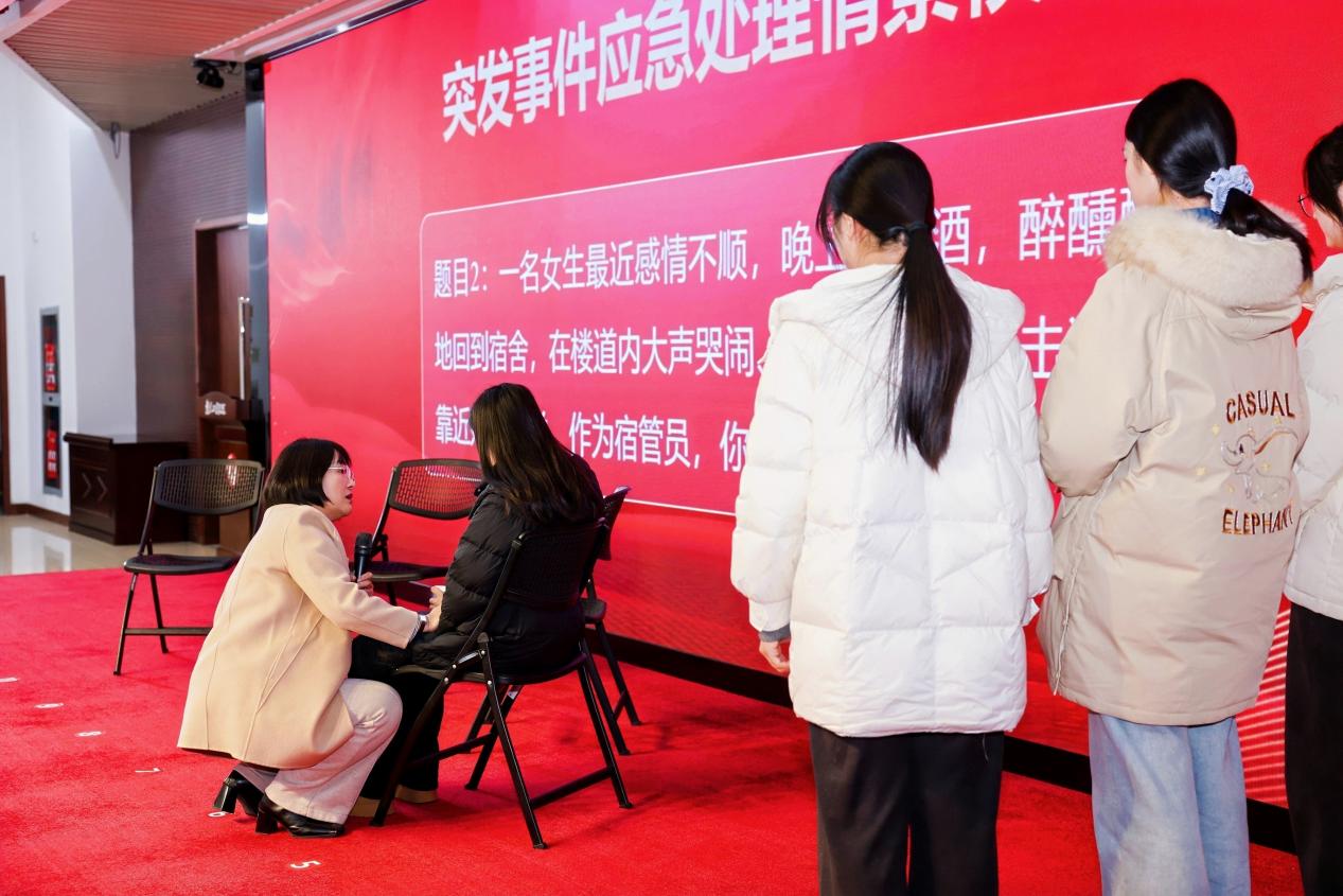 本次赛事邀请来自14所应用型高校的宿舍管理员代表参加,命题紧紧围绕新时代高校学生社区治理与服务需求,设置了“基础知识测试”“信息技术应用能力测评”“我的宿管故事”演讲及“突发事件处理情景展示”四个竞赛单元,全面考察宿管员的专业理论、实操技能、应变能力与育人情怀。郭秀娟同志的优异表现,不仅是对其个人职业素养和过硬本领的认可,更是学校长期以来重视和加强宿舍管理队伍专业化、职业化建设的生动注脚。