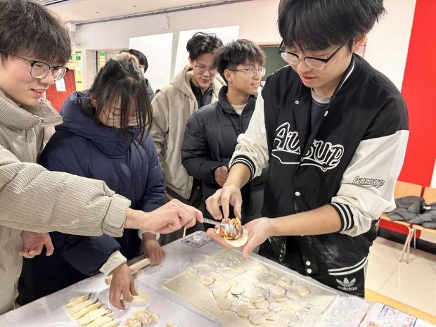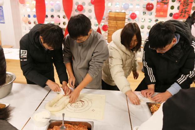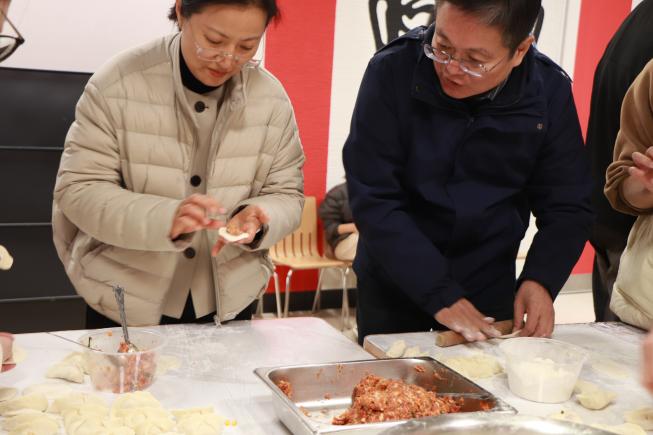 携手包饺子,劳动凝聚团结情。学院在学生社区一食堂举办“巧手传香承暖意,同心相聚话团圆”包饺子活动。师生们一同揉面、擀皮、包馅,畅聊家乡风俗与校园趣事。校党委常委、宣传部部长李玲作为联系班级校领导参与活动,她勉励同学们坚定理想、脚踏实地,在集体劳动中感受温暖、凝聚共识。大家协作配合、笑语融融,情感在暖意盎然的氛围中悄然加深。随着一笼笼热气腾腾的饺子出锅,食堂里暖流涌动,洋溢着温馨融洽的团圆气息。