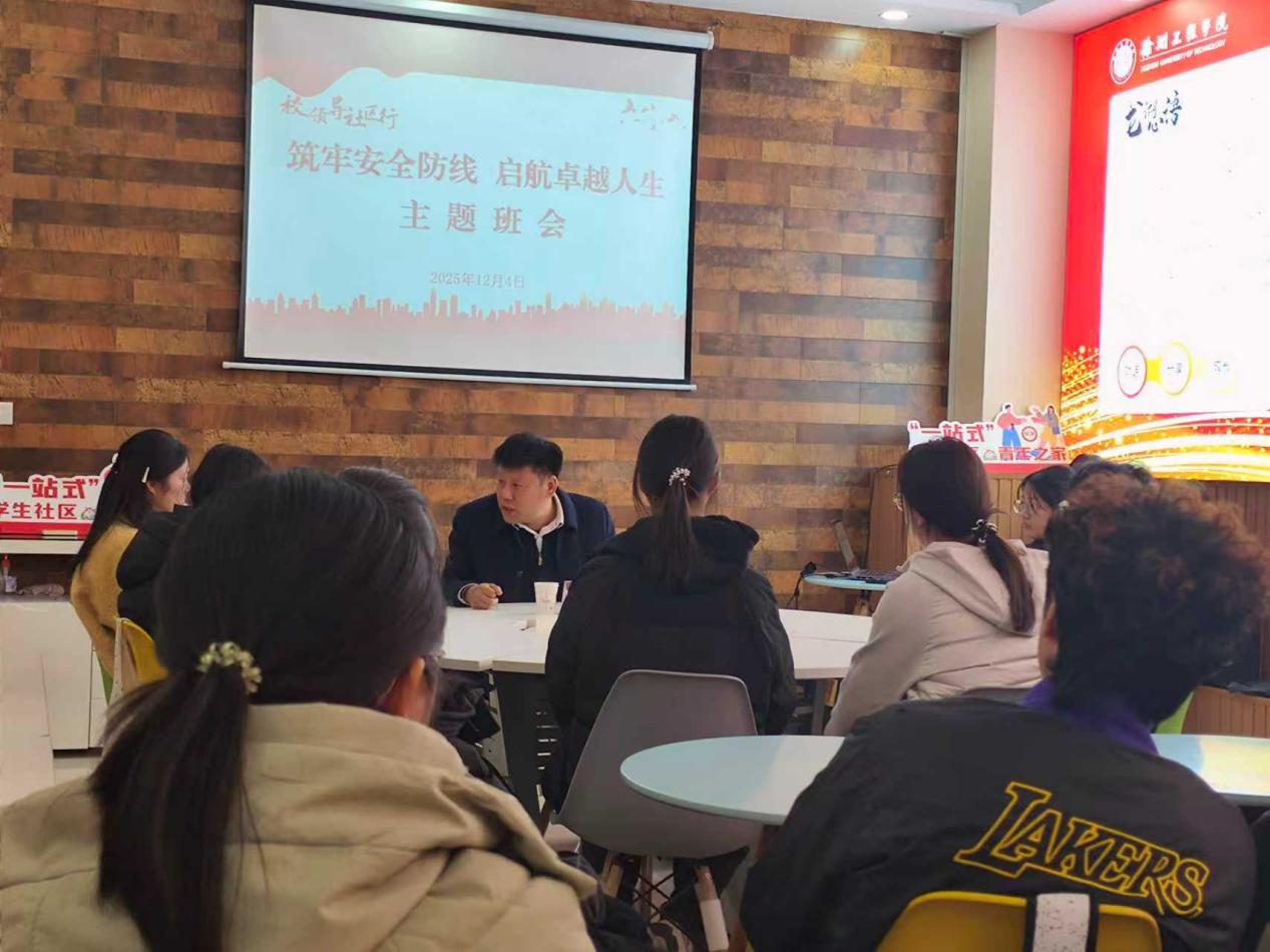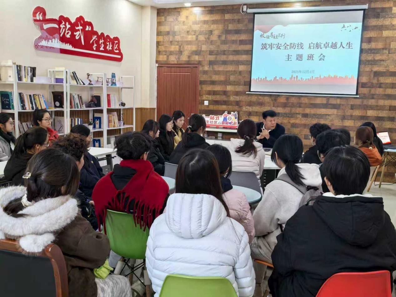 为切实加强2025级新生安全教育,引导学生科学规划大学生涯,12月4日下午,人文学院、外国语学院在“一站式”学生社区青年之家举办2025级新生安全教育与生涯规划主题活动。本次班会特邀校党委常委、副校长王逢博教授主讲,人文学院党委副书记陆泽歆主持活动,2025级新生代表参与学习。