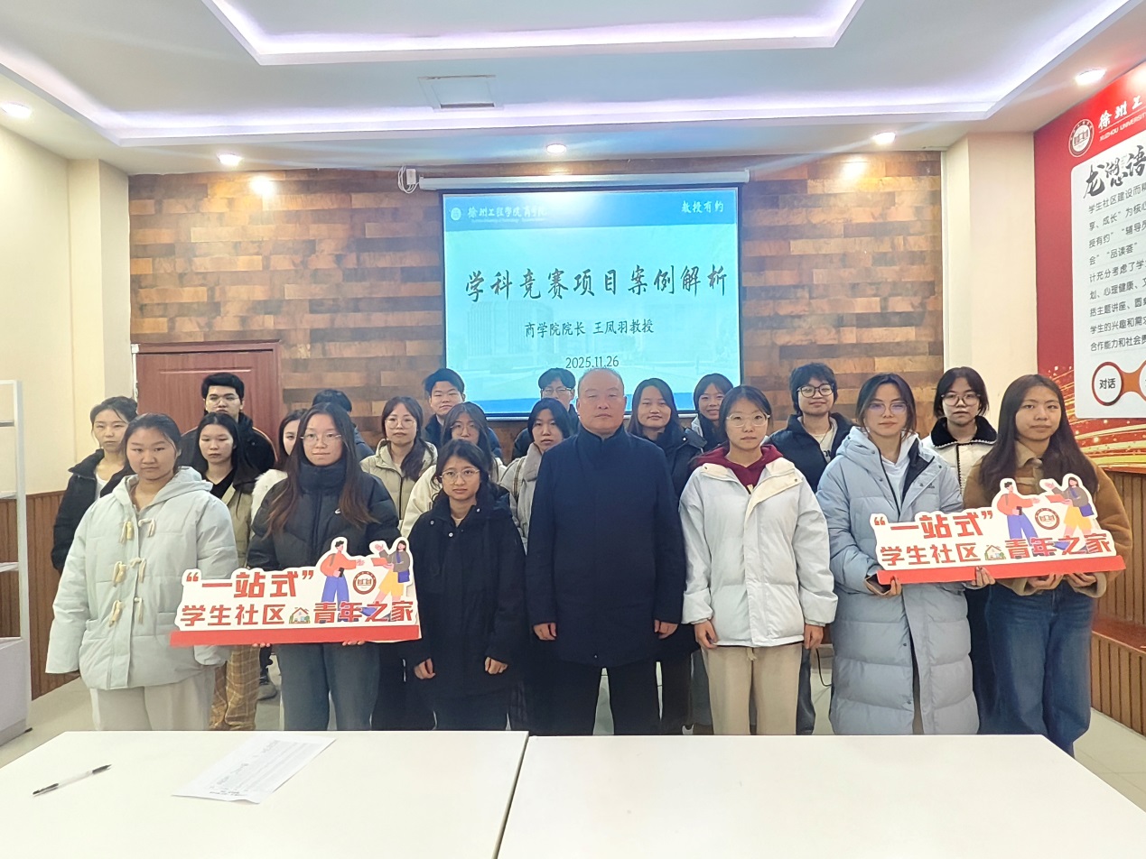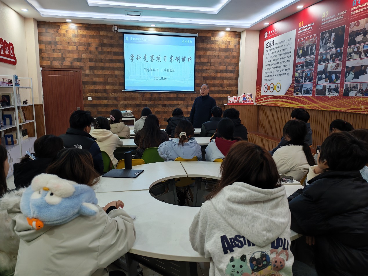 11月26日,学工处联合商学院在 “一站式”学生社区成功举办了第三十二期“教授有约”活动。本次活动特邀商学院院长王凤羽教授担任主讲嘉宾,以“学科竞赛项目案例解析”为主题,聚焦大学阶段三大赛事的备赛而展开深度分享,与学生代表展开面对面交流。
