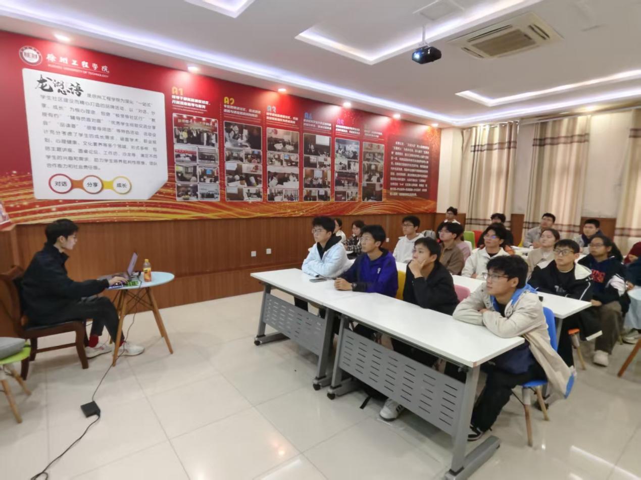 胡斌同学以自身经历为切入点,围绕“如何平衡学业与学生工作”展开分享。他介绍了自己的“优先级排序法”“碎片时间利用技巧”等具体时间管理方法,为在场新生提供了可落地的时间管理方案,让大家深刻认识到“高效规划”在大学学习中的重要性。在学习方法分享环节,胡斌同学结合近期高数考试满分的经验,从“课前预习重点标记”“课上紧跟老师思路抓逻辑”“课后错题复盘归类”三个维度,拆解了工科学习的核心要点。针对英语学习,他建议新生利用“每日晨读积累词汇”“定期做真题分析错题”等方式提升能力。胡斌同学还详细介绍了自己参与数学竞赛、英语竞赛、数学建模竞赛及舞龙比赛的备赛历程。在互动环节中,大一新生积极提问,围绕“如何快速适应大学课堂节奏”“竞赛备赛与日常学习冲突怎么办”等问题与学长交流,现场氛围热烈。