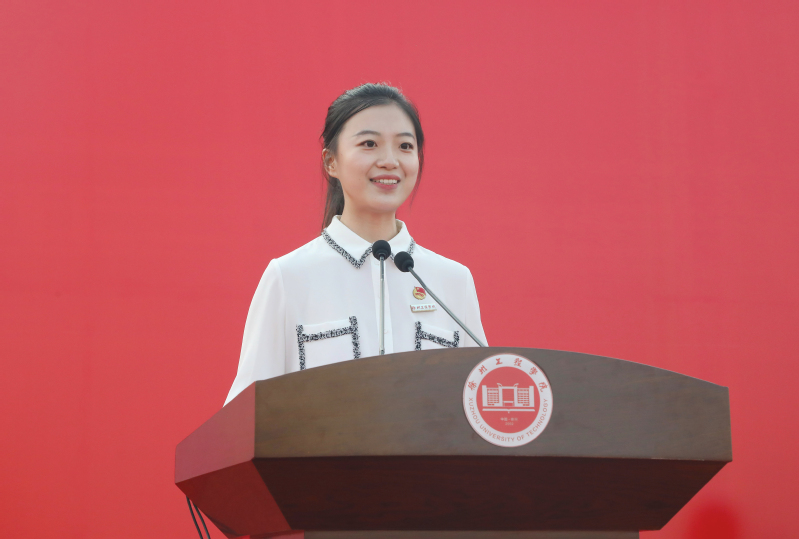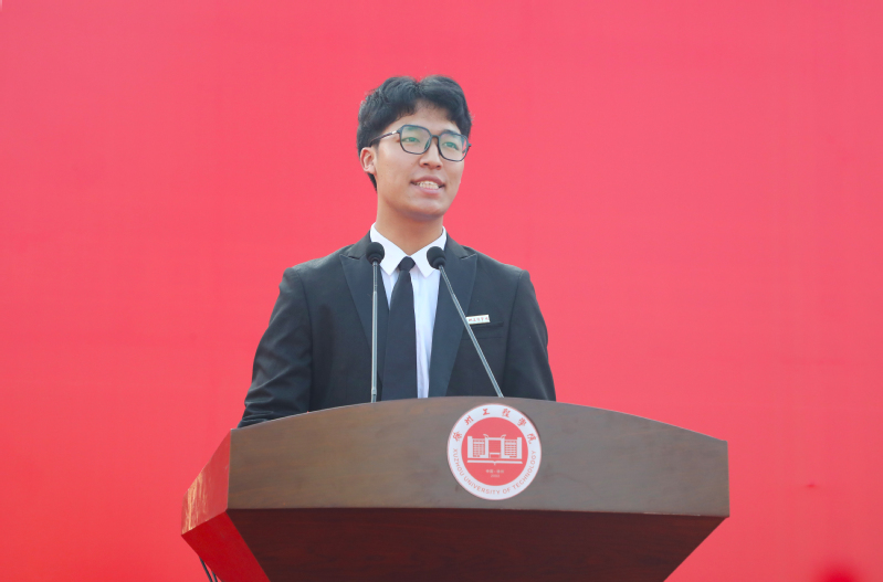 教师代表、材料与化学工程学院吴琼博士在发言中表达了对青春岁月的赞美和对新生们未来四年的期许。高年级学生代表、食品与生物工程学院李若冰,新生代表、土木工程学院杨博恒分别作了发言,表达了对学校殷殷培育的感恩之情,抒发了请党放心、强国有我的时代心声。